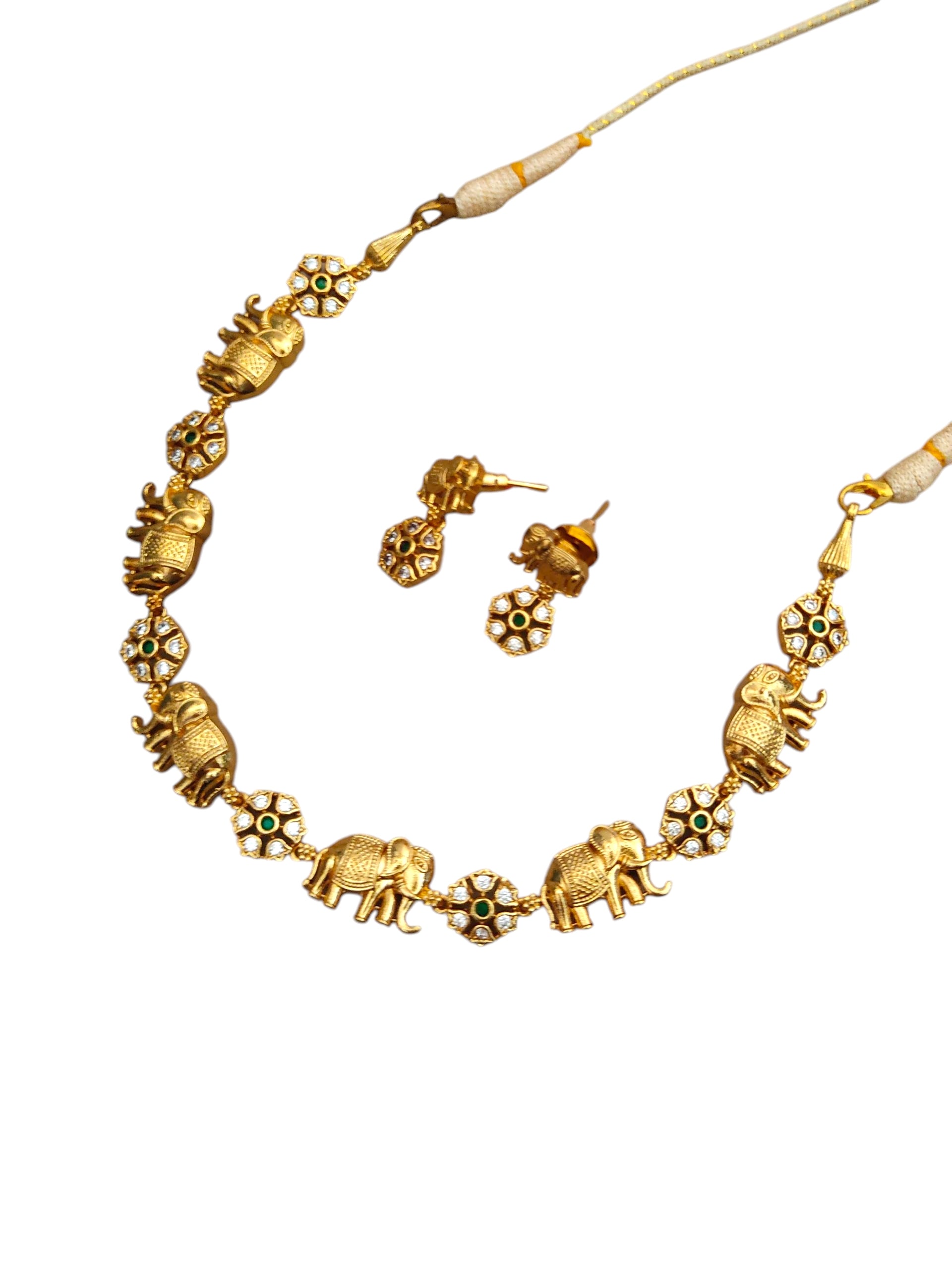 Minimal and elegant elephant design necklace set. Perfect for festive wear and bridesmaids.