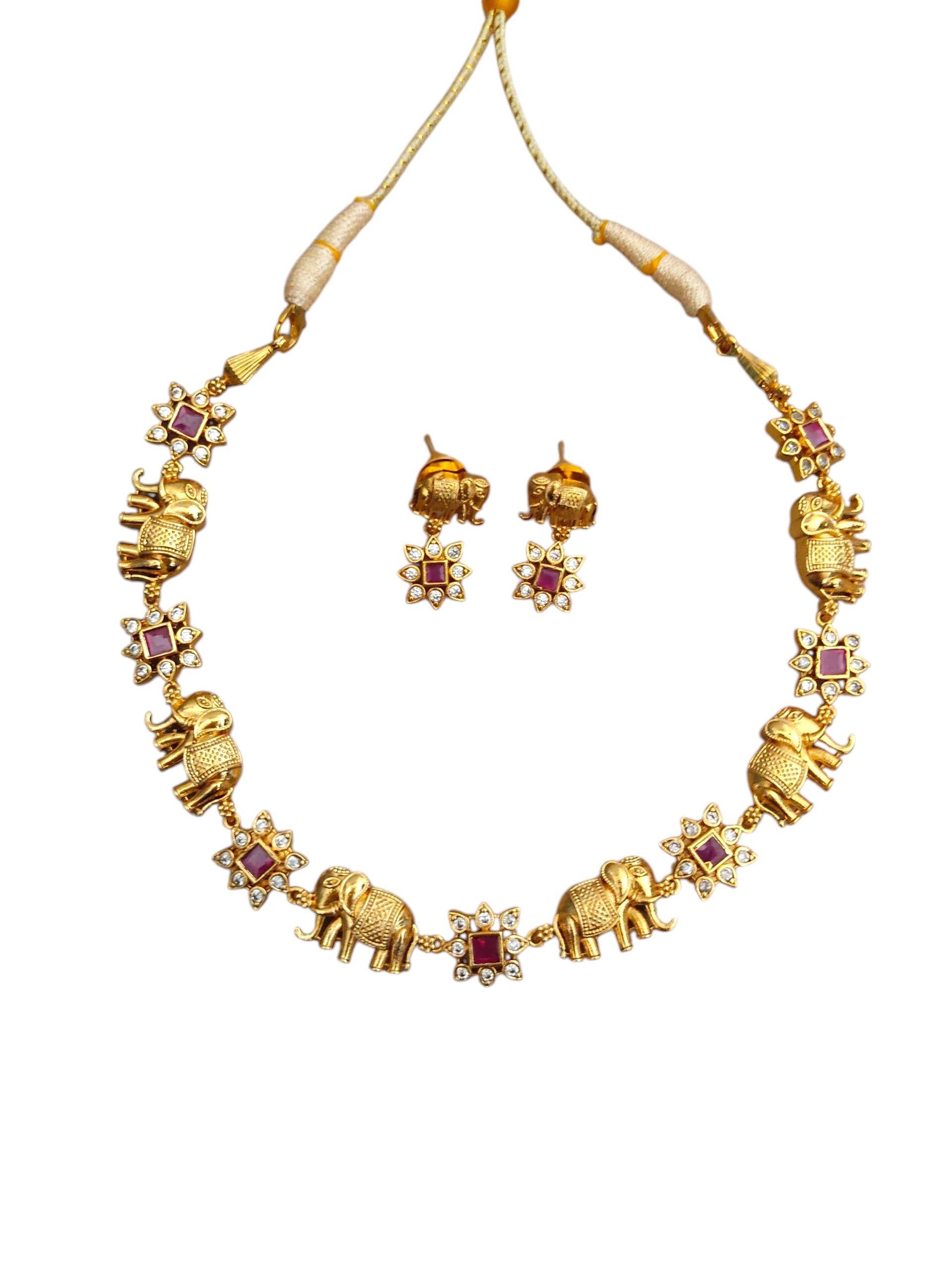 Minimal and elegant elephant design necklace set. Perfect for festive wear and bridesmaids.